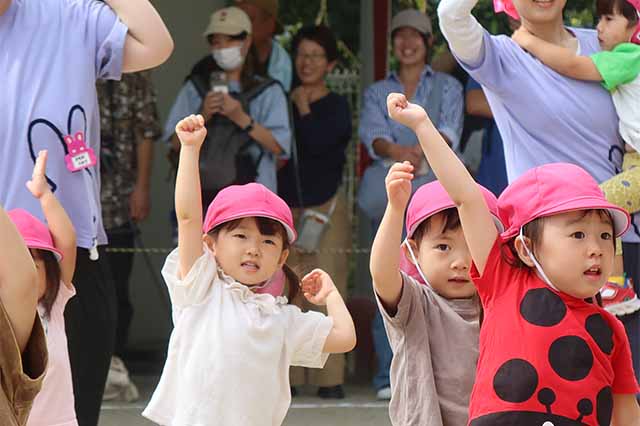今年度から園庭にて、二部制での開催となった運動会。いつも練習してきた園庭だからこそ緊張もなく、子どもたちもより一層力が発揮できました。