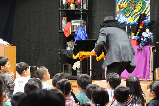 園長先生によるマジックショーは驚きの連続で、成功する度に歓声が上がりました。