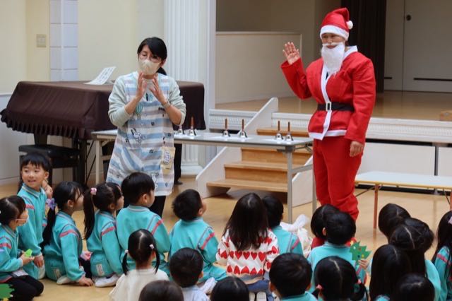 心地よい冬晴れの中、うさちゃんクラブではクリスマス会を行いました。先生たちはサンタさんの姿でみんなをお出迎えし、同じくサンタさんの姿で参加してくれたお子さんもいました。とてもかわいらしくお似合いでしたよ。