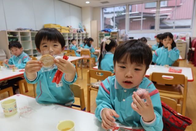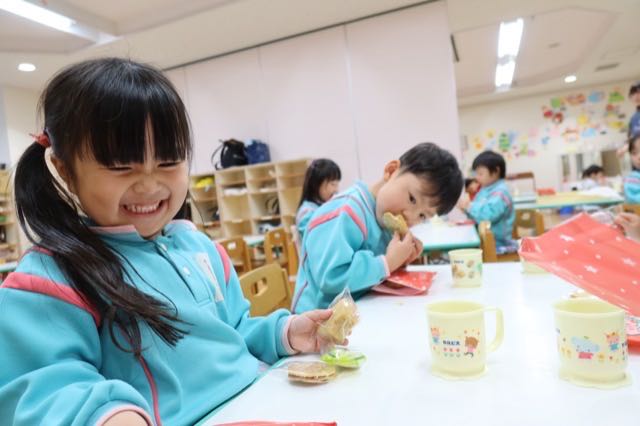 子どもへの感染も多くみられるオミクロン株。このコロナ禍であっても幼稚園生活最後の楽しい思い出を作るべく、先生たちも参加するしっぽ取りゲームやお菓子もOKの青空給食など、特別な時間をみんなで楽しく過ごすことができましたね。